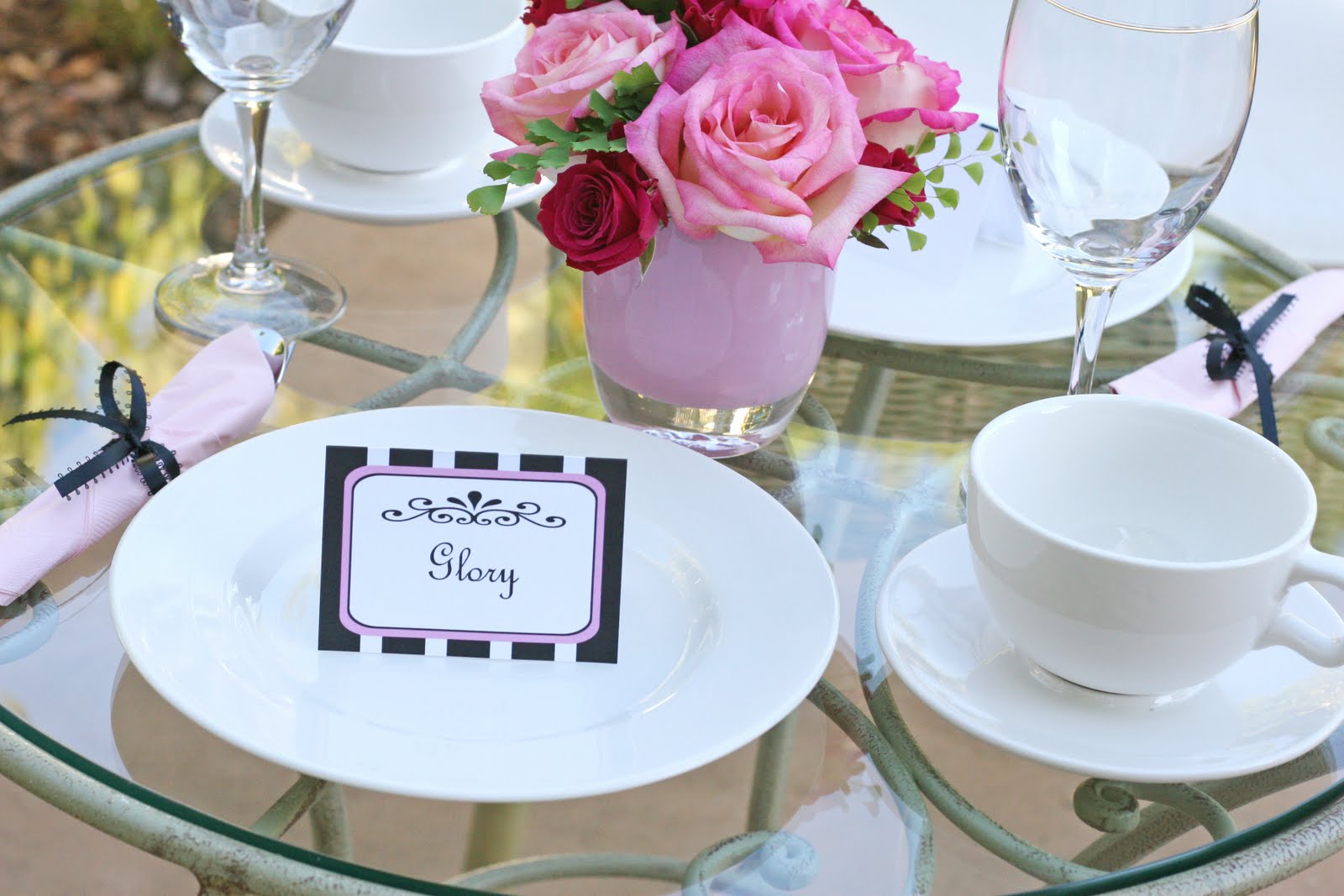 I started with some desserts from Donsuemor bakery, pretty little Cute Cakes, Madeleines and French Almond Cakes. I baked up some mini Chocolate Raspberry Tarts (recipe soon), got to work on some pretty food tags, and went shopping for a few more treats to add to the table. Then I called up a friend and asked her to join me for coffee and some desserts after dinner. We sat in the backyard, listening to french music, chatting and enjoying fresh fruit, iced coffee, and lots of pretty desserts.